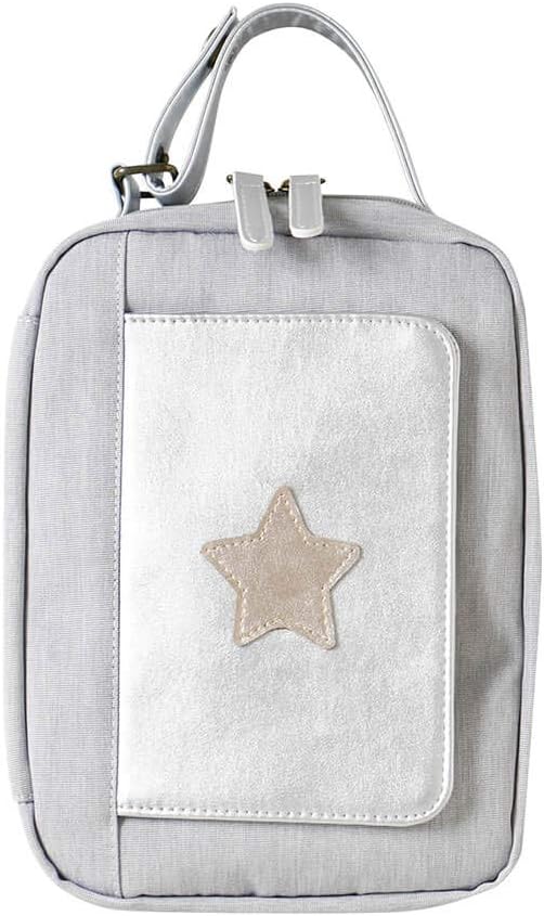 かわいい柄タイプが3種類、グレーと水色のシンプルの5タイプのおむつポーチ。サイズもMサイズはおむつ8枚、Lサイズはおむつ15枚も収納可能!小分けのポケットもついているから、こまごましたものも一緒にまとめられる機能面も優秀です。