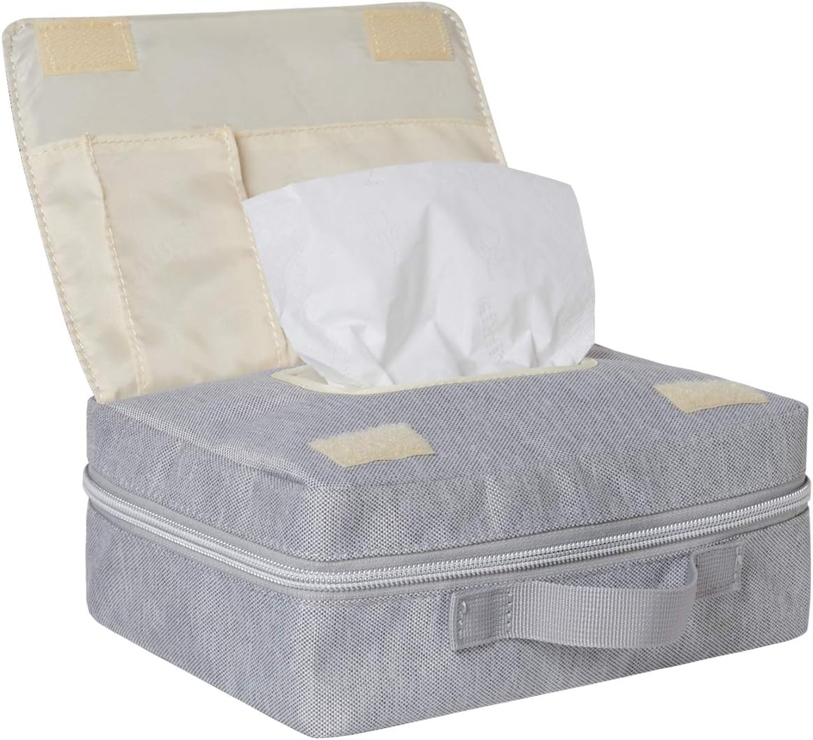 かばんの中に入れてもかさばらない薄型が人気のポイント。フラップを開けばおしり拭きがティッシュのように取り出せます。持ち手は取り外し可能。ストラップが別売りで販売されており、ストラップを付ければショルダーバッグにも変身します。