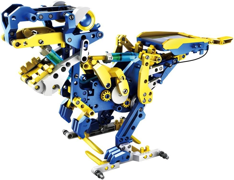 恐竜の代表格・T-レックスがソーラーパワーで動き出す! さらにゾウ、ワニ、サル、ダチョウ、サソリ、プテラノドン、犬のさんぽ、ショベルカー、フォークリフト、ローバー、バギーと変形。組み立てからソーラーパワー、変形までをこれひとつで楽しめます。