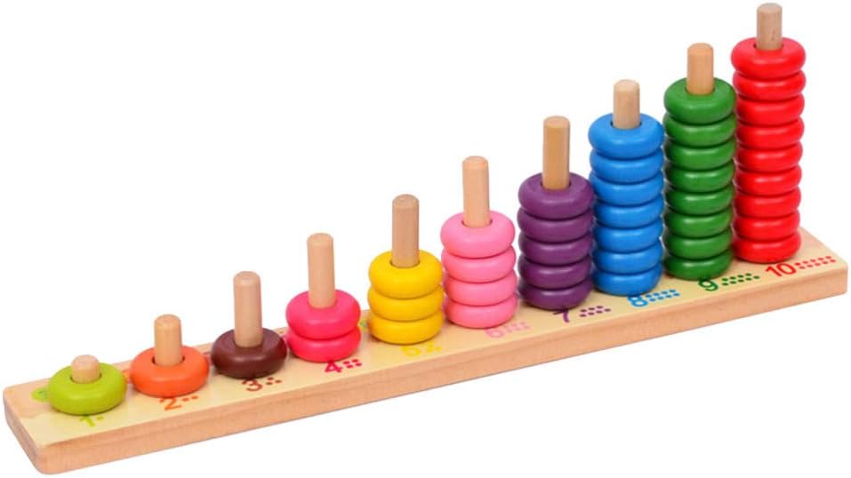 こちらは、わなげのように自分で珠を通していくそろばんおもちゃ。列によって通せる数が異なるので、視覚的に数の「多い・少ない」を理解することができます。珠を棒に通す作業は小さいお子さんでは少し難しいので、大人が手伝ってあげるとよいですね。