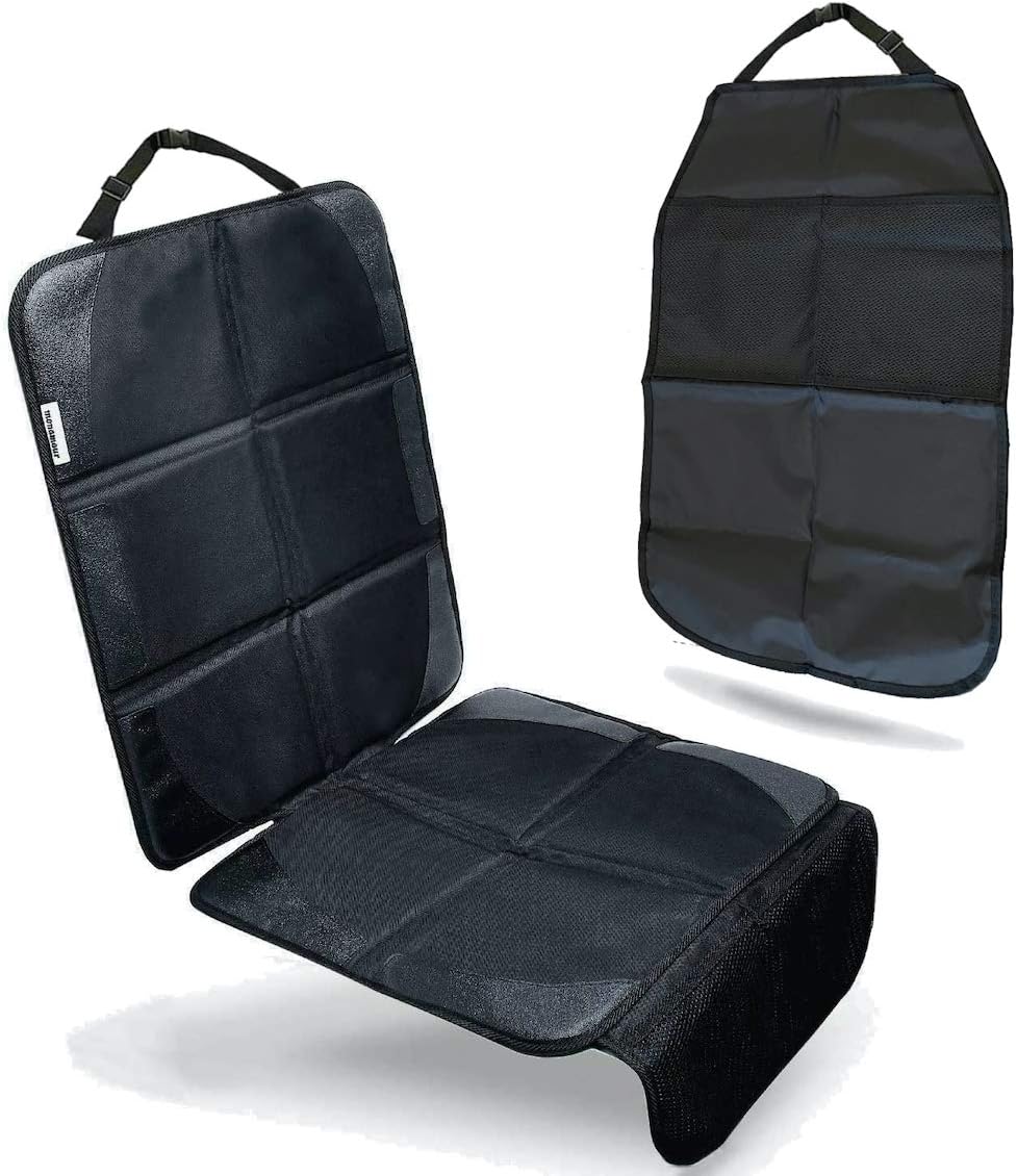 こちらも下面のみ覆うタイプの保護マット。ISOFIXタイプのチャイルドシートもOKで、ほとんどの車種に対応しています。チャイルドシートからジュニアシートにまで使用でき、車の後部座席でも前部座席でも可能。さまざまなシーンで使える保護マットです。