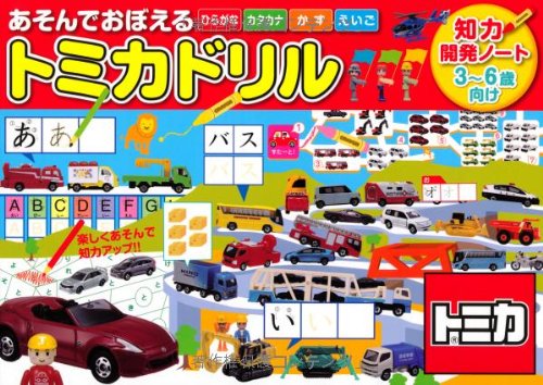 子どもが大好きな「トミカ」を教材にしたドリル。車の写真に合わせて車の名前をひらがなで書いていくなど、乗り物好きのお子さんのやる気を引き出す問題がいっぱい。すべてのページがカラーなので、絵本を楽しむ感覚でスイスイ学習が進みます。カタカナ、数、英語を学習できるページもありますよ。