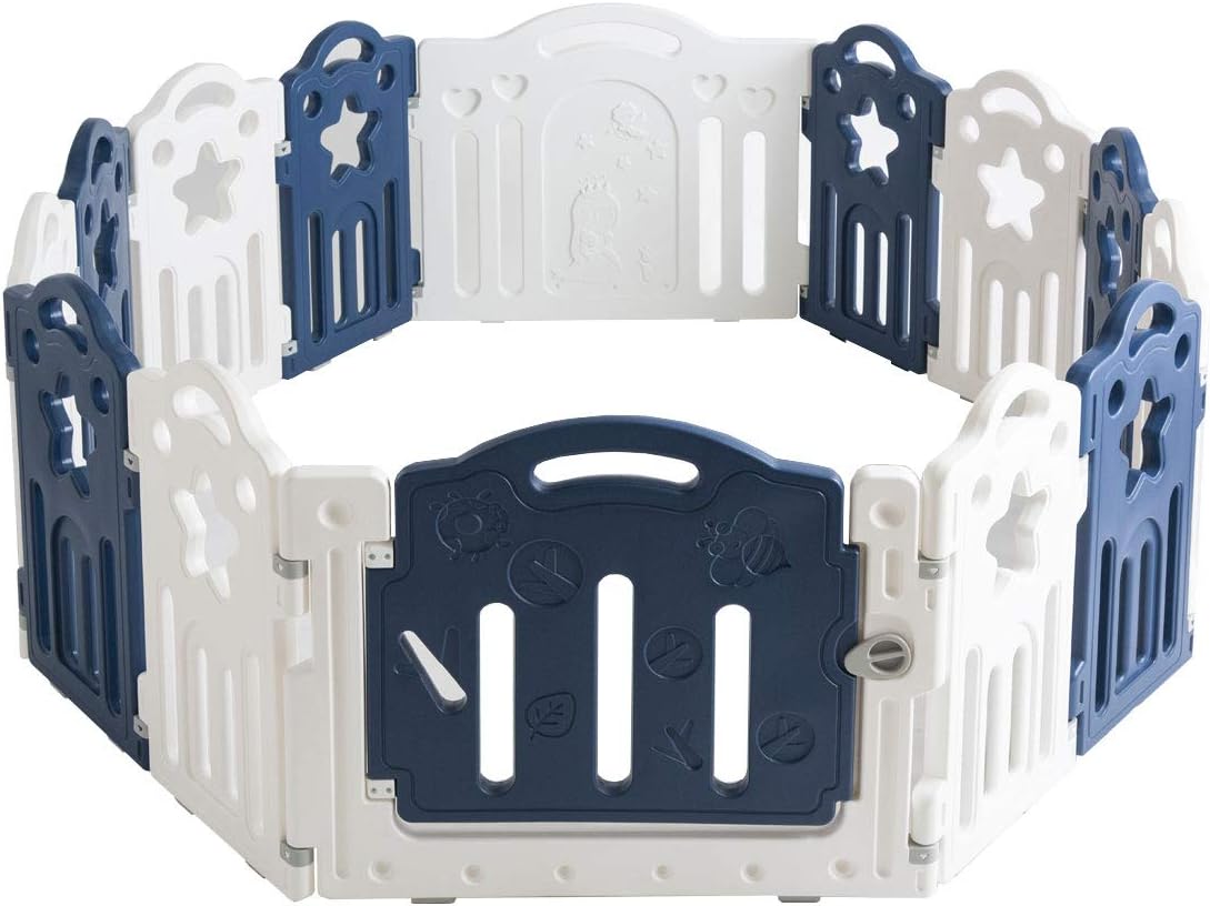 星を基調としたデザインで色がシックなので、おうちのインテリアにも馴染みそうなベビーサークル。パネル同士はしっかりと隙間なく組み立て可能で、赤ちゃんが外に出ないように外側からロックをかけることも可能です。パネルの数を変えることで中の広さを自由に変更できるのも魅力的です。