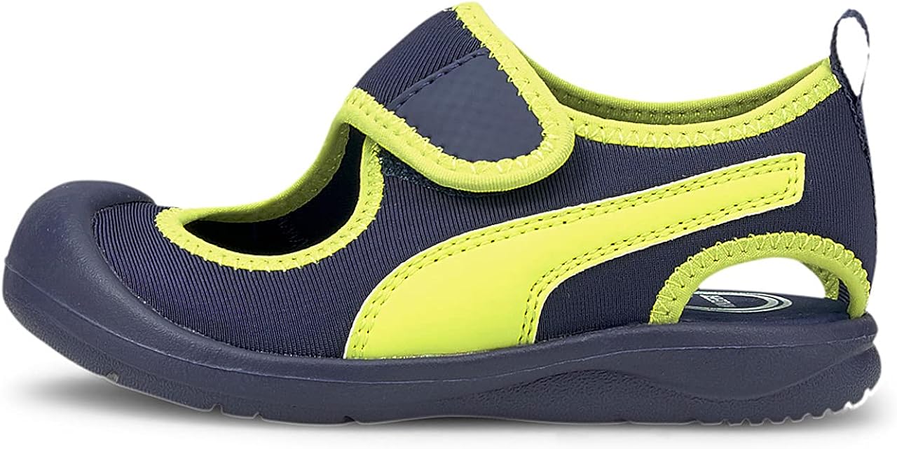 シンプルな色合いと可愛らしいデザインが人気のプーマのベビーサンダル。軽くて履きやすい素材で作られているこの商品は赤ちゃんの足をしっかりと守ります。つま先を守るトウの形もポイントです。