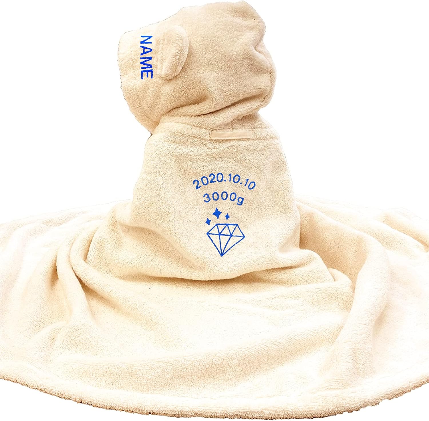 出産祝いに人気の名入れアイテム。こちらの今治タオルのベビーバスローブは名前のほかに生年月日、体重も入れられるのが特徴です。バスローブや文字のカラーも選べますよ。世界にたったひとつだけのベビーバスローブを贈ってあげましょう。