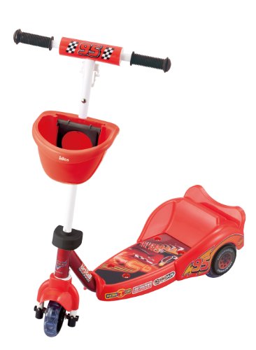 ハンドル部分が折りたため、持ち運びがしやすいスクーター。足の巻き込み防止のため、後輪に大きなカバーが付いています。前かごにはドリンクホルダーも!男の子が大好きなキャラクター、カーズのマックイーンスクーターで、爽快に走り回っちゃおう!