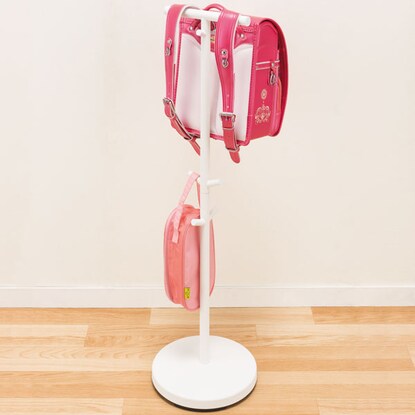 帰宅してランドセルをサッと下ろし、脱いだ帽子や上着と一緒にかけられる、ポールハンガータイプのランドセルスタンド。ランドセル専用のものなら、子ども向けの高さにつくられているので、倒れてくる心配はありません。来客用のコートかけなどにも使えて便利です。