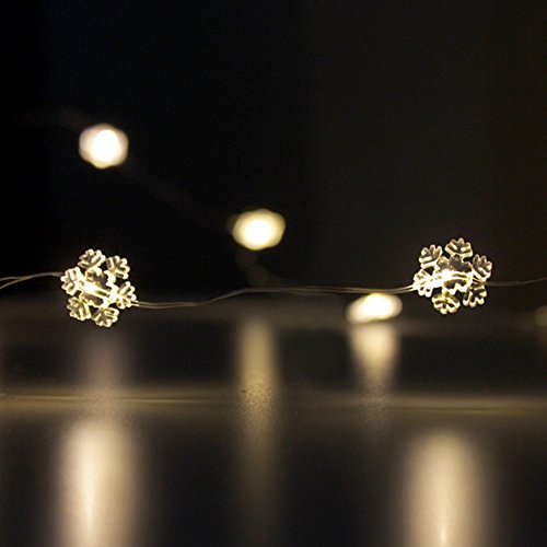 雪の結晶型のライトが30球付いたイルミネーションです。温かい電球色となっており、室内のちょっとした飾りつけに向いています。