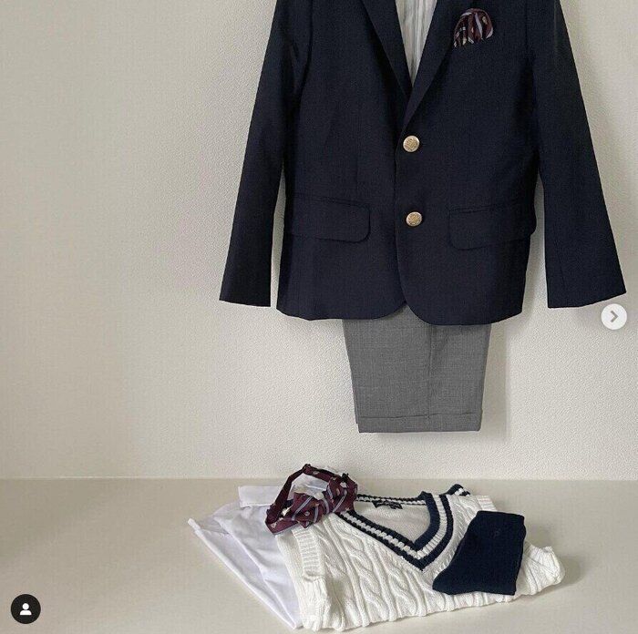 こちらは、green label relaxing (グリーンレーベルリラクシング)のセレモニーアイテムです。お子さんの入園式にとゲットしたんだとか。arisaさんも、ネイビーをリンクさせたスーツをそろえたようですよ。当日は、お二人でいっしょに着るのが楽しみですね♪