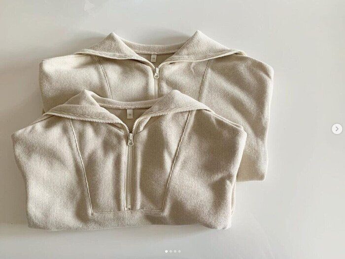 SHINさんは「ハーフジップセーラーカラープルオーバー」を購入。1,990円→990円とかなりお安くゲットできたようですよ♪ 2人のきょうだいに、大きめサイズで2着ゲット。花柄のパンツと合わせている人を見かけて可愛い!と思ったので、その組み合わせで着てみたいとのこと。春先にも活躍してくれそうですよね。