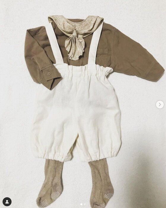 isamama02さんは無印良品の「フランネルスタンドカラーシャツ」でお誕生日フォトコーデ♪ セール価格になっていたそうで、定価よりも安く買うことができたんだとか。サロペットと合わせると可愛らしい印象になりますね♪