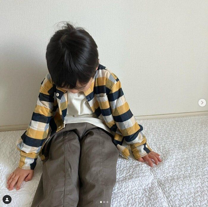 Mayuさんは無印良品のキッズシャツにチェックパンツを合わせたコーディネート!美術館にお出かけしたときのコーディネートだそうで、落ち着いた雰囲気に仕上がっていますよね。着回ししやすい白シャツは、一枚は持っていたいアイテムですね♪