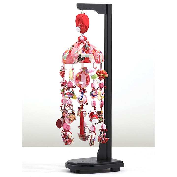 日本人形の老舗が手掛けるつるし雛です。赤とピンクをベースとした、華やかながらも温もりを感じるデザイン。子孫繁栄、家族の幸せ、人の輪を表す、人形や花、野菜・果物、手毬などを吊るしました。リーズナブルでスペースを取らないのも魅力。置くだけでお部屋がぱっと華やぐので、雛壇とあわせて飾ってもいいですね。