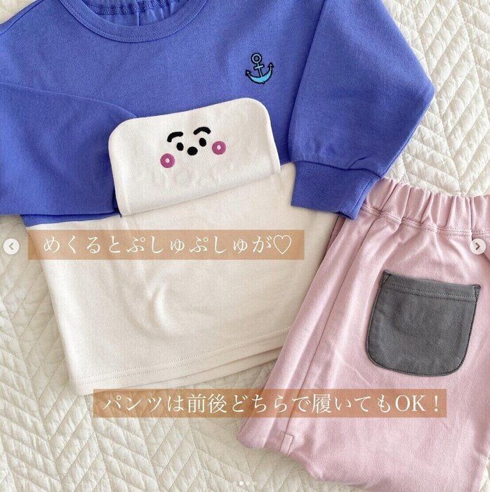 みみさんは、シナぷしゅとコラボされたカンタンTとサマナルパンツを購入。トップスのぷしゅぷしゅはポケットにしまうことができるんだとか。パンツはゆったりしており、ウエスト周りもよく伸びるので、一人で履きたがるお子さんにはピッタリとのこと。シナぷしゅファンにはたまらないですね♪