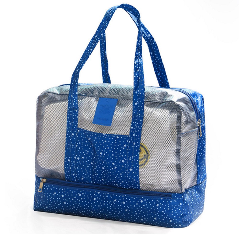 トート型のプールバッグは、荷物の出し入れがしやすいのが特徴です。複雑に作られているものは少ないので、汚れたときのケアも簡単に済みます。