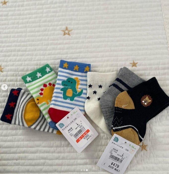 leana.yさんは西松屋で保育園用靴下をまとめ買い!それぞれ3足セットだったそうで、価格は427円と526円だったとのこと。6足まとめて1,000円以下で買えるとは、とてもコスパが良いですよね!
