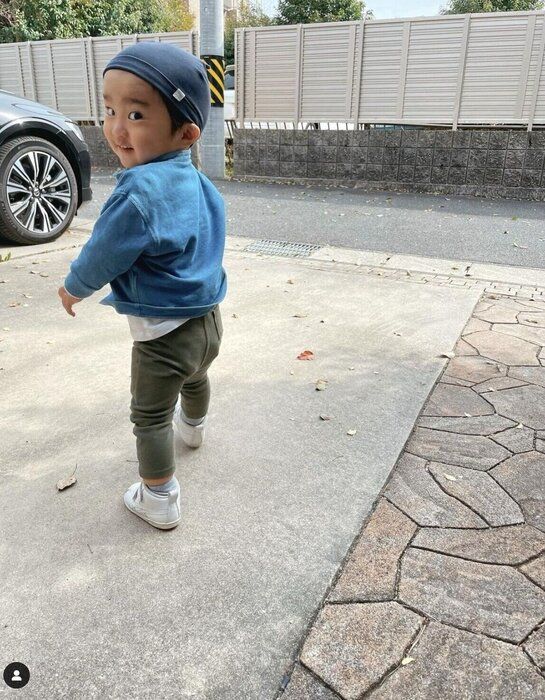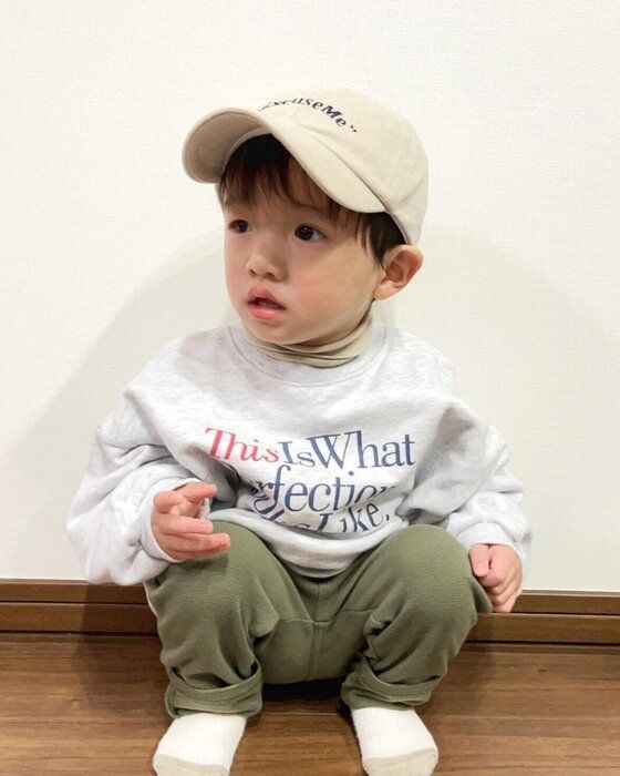 sayaさんは無印良品のトップスを使って姉弟お揃いコーデをセレクト。チャコールカラーがとてもおしゃれな印象ですよね。無印良品アイテムなら、無地のトップスでもおしゃれなコーデになるのが嬉しいですね!