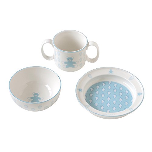 両手で持てるコップ、ご飯用のボウル、プレートの3点セットです。淡いピンクの食器セットは女の子に、男の子にブルーがあるので、使うカラーを性別で分けることも出来ます。色移りも防いでくれる強化磁器の素材で作られたものなので、長く使うことが出来ます。電子レンジや食洗器も使えるので、面倒な手間は省けて便利です。