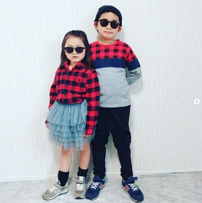 manaさんは赤いブロックチェック柄のトップスをセレクト!妹さんのトップスはGAPキッズのものだそうで、定番のブロックチェック柄ならブランド問わず合わせやすいですよね。シャツとトレーナーでシルエットは異なりますが、リンクコーデになっていますね♪