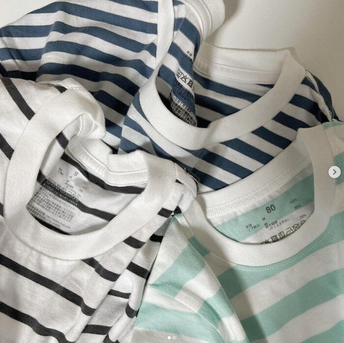 koh_a0516さんはこちらの無印良品Tシャツをまとめ買い!保育園用に着せようと考えているそうで、「プチプラで自分で着替えやすそうな物を選びました」とのこと!こちらの方は無印良品のTシャツをたくさんリピ買いしているんだとか♪