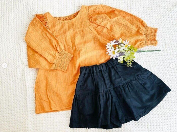 baby.kids_iさんは、オレンジカラーが可愛らしいブラウスと、ティアードキュロットを購入。買ったお洋服はつい忘れがちなので、記録としてUPしたんだとか。こちらの上下の組み合わせで、グッと夏らしい素敵なコーデになりますよね。