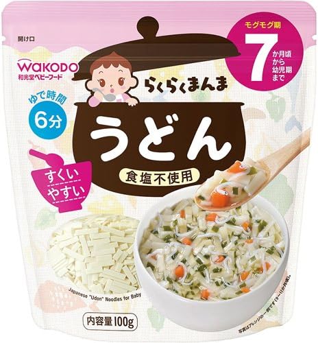 ベビーフードをベースに素材を足したレシピです。野菜やお肉、根菜や豆類などがぎゅっとつまったベビーフードにやわらかく煮たうどんをまぜれば、手軽に栄養満点なうどんができあがります。水溶き片栗粉でとろみをつけても食べやすいでしょう。