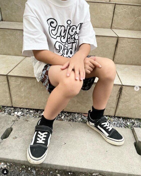 ASUKAさんは、左側にある黒と白のロゴTを購入。なんと2枚とも各990円とお買い得価格だったんだそう。生地もしっかりしており、保育園・幼稚園着にもおすすめなんだとか。小さめのロゴがオシャレで、高見えするTシャツですよね。