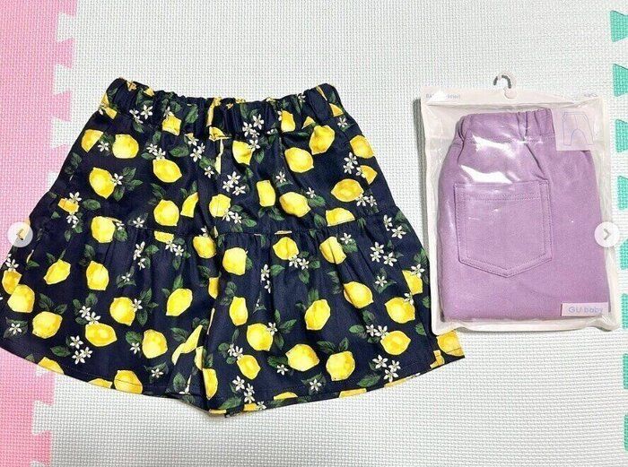 すぅあぉママさんは、レモン柄がなんとも可愛らしいティアードキュロット(990円)と、とってもお買い得なサマナルパンツ(390円)を購入。キュロットは、汗をかいても足にペタッと張りつくことが無さそうですよね。サマナルパンツもラクにサッと履けちゃう♪ どちらもこの夏、大活躍してくれそうですね。