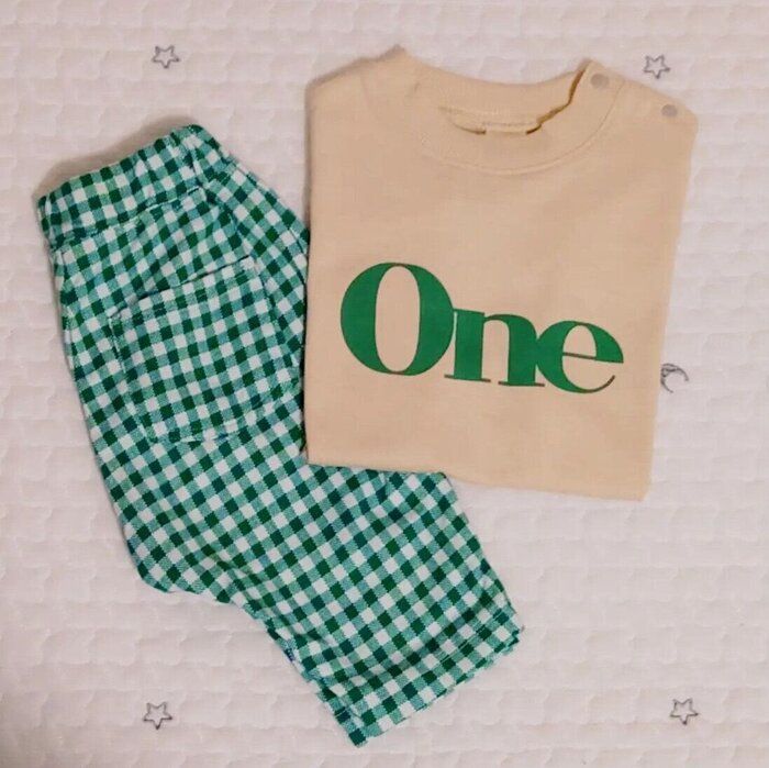 milk.raraさんは、サマナルパンツ7分丈を購入。ポップな色味のグリーンカラーに、ギンガムチェック柄がなんともキュートですよね!トップスのロゴのグリーンとも合っていて、素敵なコーデに♪ 夏らしい明るい色で可愛いですよね。