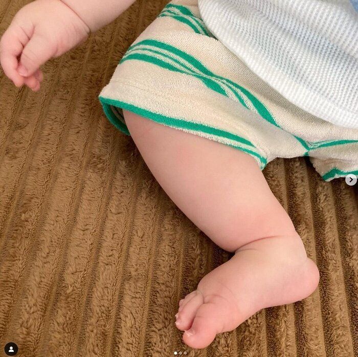HarukaさんはZARAのレースパンツを出産祝いにもらったそう。「小さいパンツも可愛いしむちむち足もたまらん」とのことで、お子さんの可愛さがさらに引き立つアイテムですよね!トップスはバースデイで買った商品とのこと。