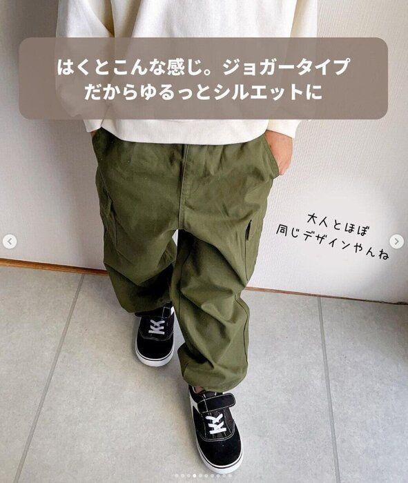 りりんさんは、新作のワイドカーゴジョガーパンツを購入。ウエスト部分は中にゴムが入っていて、調節もできるようですよ。ウエストが調節できるので、大きめサイズを買ってもよかったかも...とのこと。ゆるっとしたシルエットも大人っぽくて素敵!カッコよく決まるパンツですね。