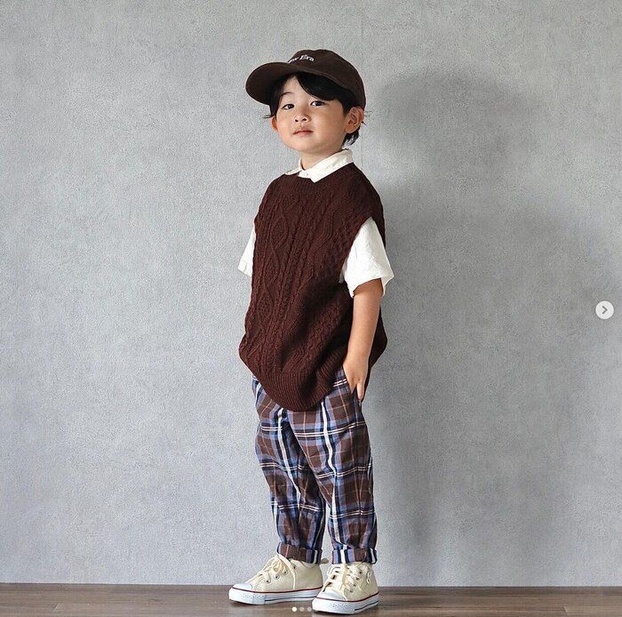 CHIYUMIさんは、こちらのシェフパンツを購入。チョコレートっぽいコーデがカッコよくて素敵ですよね!ブラウン×ホワイトの中に、一際映えるブルー・ブラウンのチェックパンツがポイントに♪ とってもお似合いですね。