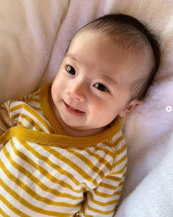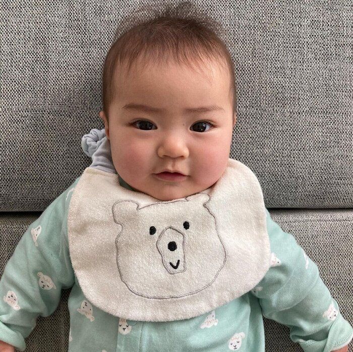 asukaさんは、こちらのボディスーツを購入。秋らしいイエローカラーで、これ一枚でおしゃれに見えますよね。前開きタイプなので、脱ぎ着もササっとできそう!これから動きが活発になっても、ラクにお着替えできるデザインですよね。上下がつながっていることから、おなかの冷え対策としてもかなり重宝しますね!