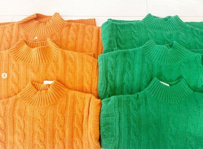 色味が鮮やかで可愛すぎ!「パフィータッチケーブルモックネックセーター」