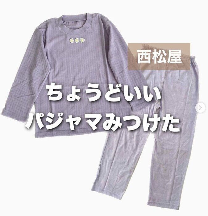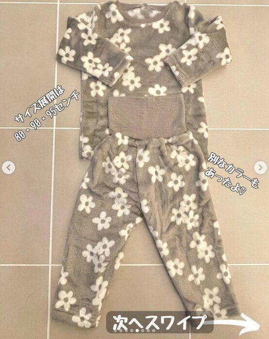 こちらはako_masyharumomさんが発見したという、西松屋の花柄パジャマ。グレーの色味が大人っぽくて素敵ですよね!フリース素材で腹巻き付きなので、本格的に寒くなってきたら大活躍しそう♪