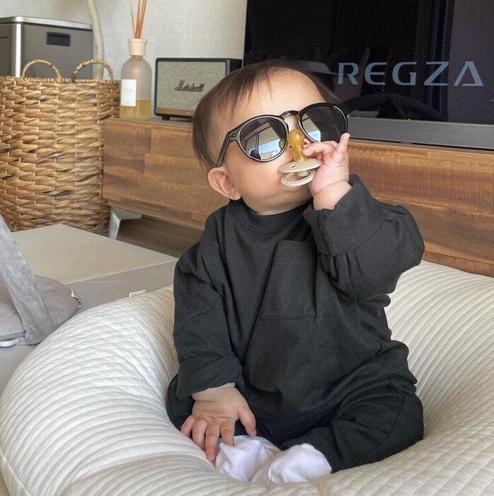 n_____ei18さんは、こちらのトップスとパンツを購入。上下を同系色で合わせ、シックな印象でカッコいいですよね。シンプルなロンT&パンツは、着回しにとにかく便利で、色違いで持っててもGood♪ 映画「ボス・ベイビー」のようで、とってもキュートなお写真ですね。