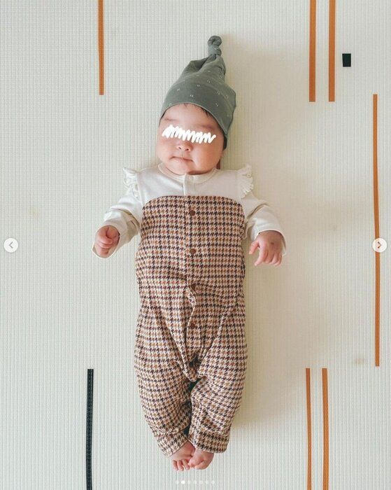 RISAさんは、こちらの千鳥チェックが可愛らしいセパオールを購入。肩部分のフリルがさりげなくオシャレで、秋らしい色合いのお洋服ですよね。スナップボタン式なので、お着替えもおむつ替えもラクラク♪ いろんな人にお披露目したくなるほどキュートなデザインですね!