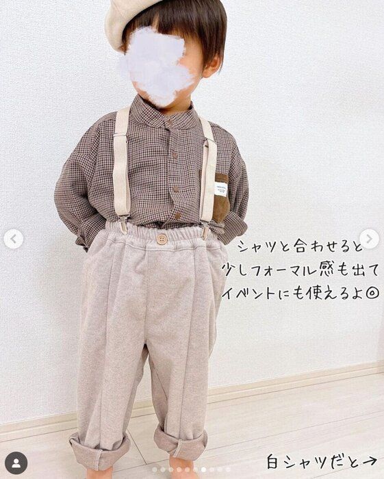 こちらは西松屋のサスペンダーを使った、お出かけコーデ。保育園や外遊びのシーンでは使いづらいので、お出かけコーデにこそ取り入れたいアイテムですよね!サスペンダーをつけるだけでフォーマル感がプラスされ、デイリーコーデと差をつけることができますよ♪ mi_boyclothesさんのようにシャツと合わせれば、より特別感を演出することができますね◎