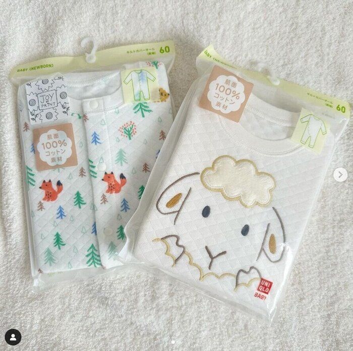 ちゃびさんは、キルトカバーオールを購入。冬の赤ちゃんのパジャマは、前開きタイプのカバーオールがとってもおすすめなんです♪ お風呂からあがって身体が冷えてしまう前にササっと着せることができ、上下つながっているのでアクティブに動いてもOK!キルト素材だと生地の中に空気を含んでくれるので、さらにあたたかく過ごせますよ。