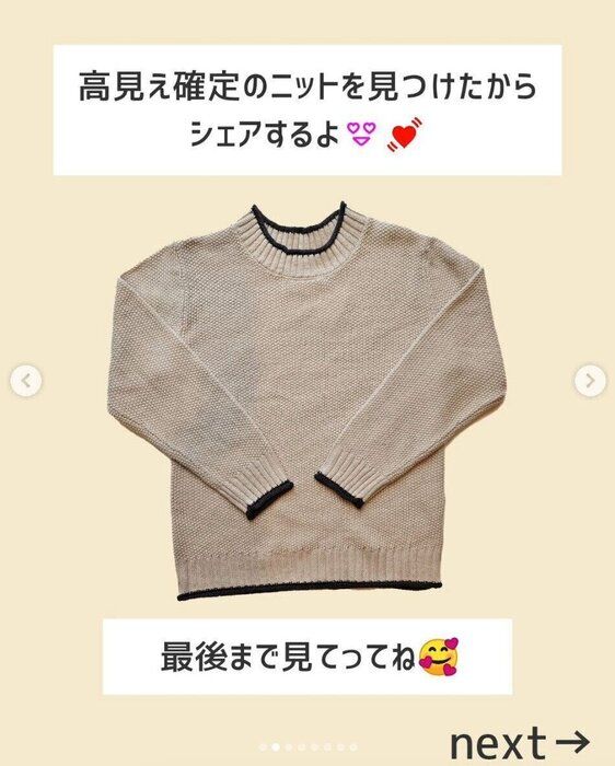 全色買いする人が続出するほどバズっているのが、こちらのドロップショルダーニット。chapi_1205さんは残りの1色になかなか出会えなかったそうですが、ついにゲットできたんだとか!人気の秘密は、ドロップショルダーならではの、ゆるっと感だそうですよ♪