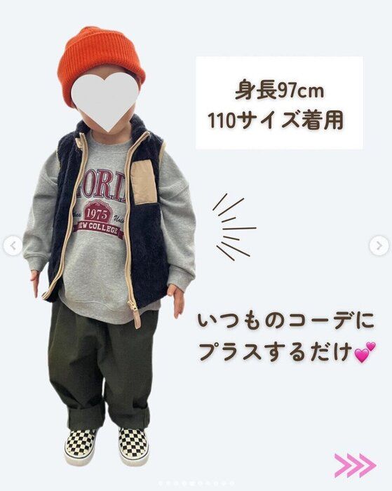 chikkun.kids_outfitさんがゲットしたのは、西松屋のフリースベスト。軽くてフードがついておらず、外遊びにもぴったり!厚手すぎないので、このうえにアウターを着ておいて、暑くなればアウターを脱いでもいいですね。こちらの投稿のように、トレーナー×パンツコーデに投入するだけで、一気にあか抜けて見えます。ファスナータイプなので、子どもが自分で着脱しやすいのもgood◎