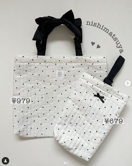 SNSで特に話題となっているのが、こちらのアイテム。モノトーン×ハート×リボンのデザインが大人かわいいと、とても人気なようです!特にレッスンバッグは持ち手に大きなリボンが付いており、zuuu.uuunaさんも気に入っているとのこと♪