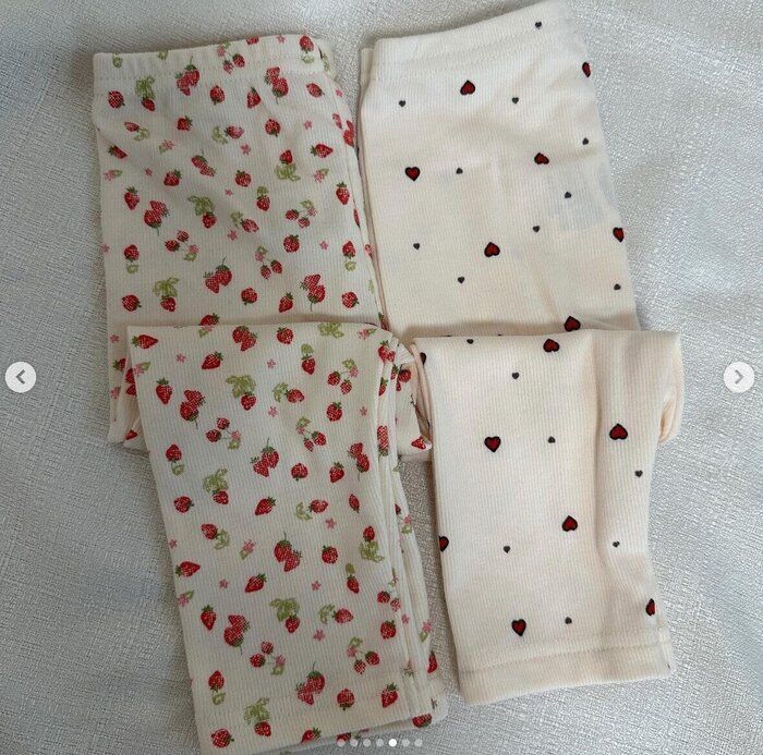 こちらは1点あたり581円でゲットできる、イチゴ柄レギンスとハート柄レギンス。どちらも春っぽくて、おしゃれなデザインですよね♪ 柄レギンスなので、シンプルなトップスと合わせると映えそう!デイリーにはもちろん、お出かけコーデにも使えそうですね◎
