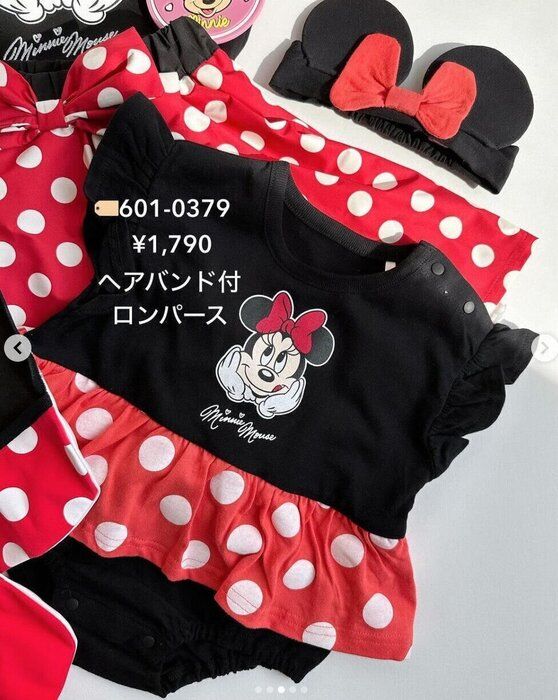こちらはzuuu.uuunaさんが購入した、ミニーマウスのロンパース。そでのフリルや、スカート部分がとてもかわいいですよね!立体的なヘアバンドも付いているので、ミニーマウスが大好きなお子さんも大喜びしそう♪ さらにこちらは綿100%素材なので、ベビーでも安心して着られますね◎