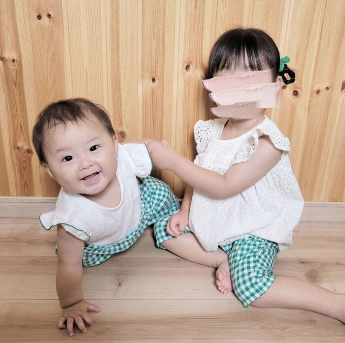chiiさんは、こちらのサマナルパンツを購入。ギンガムチェックのデザインと色味が爽やかで、これからの時期にもピッタリですよね。一番下のお子さんには、お姉ちゃんのお下がりがたくさんあるのに、おそろいのアイテムを見つけると可愛くてつい買っちゃうんだとか♪ とってもお似合いですよね!