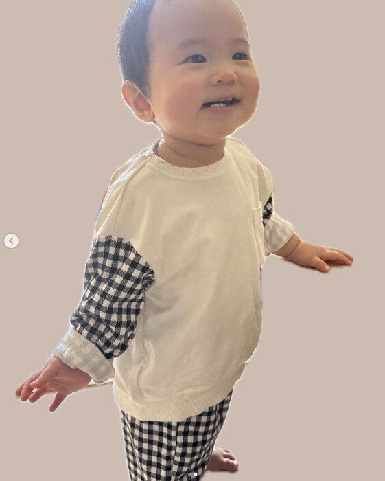 0710__rikuさんは、こちらのギンガムチェックのトップスを購入。うで部分から切り替えになっており、おしゃれなデザインですよね。ボトムスもギンガムチェックにすることで統一感のある印象に♪ お外遊びもバッチリなコーデですね。