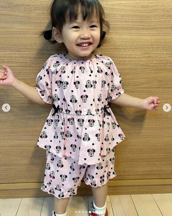 こちらは7rito_rito6さんがゲットした、ミニーマウスのセットアップ。首まわりがゴムになっているため着脱しやすく、コーデに悩む必要がないので、保育園着としてもおすすめなんだそう♪ サイドに付けられたリボンや、そで、すそのフリルなど、「かわいい」がつまったデザインですよね!