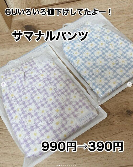 なおーぬさんは、こちらの「サマナルパンツ」を購入。なんと!990円→390円とかなりお安くゲットできたんだとか。パープル&ブルーと色味がキュート!ギンガムチェックに花柄をONしたデザインも可愛らしいですよね。