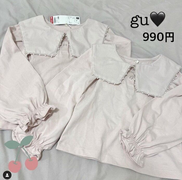 めめさんは、襟元にパールがついたブラウス(990円)を購入。そで部分のくしゅっとしたデザイン、色味、パールカラーなど、可愛さ満載のお洋服ですよね♪ ボトムスはスカートやパンツもおしゃれですし、ワンピのインナーとしても◎。可愛いだけでなく、着回しにも使えるアイテムですね。