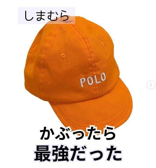 オレンジカラーでポジティブに!しまむらのロゴキャップ